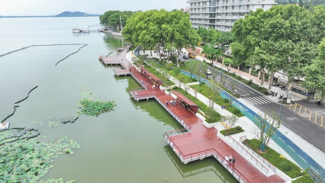 此后,为了让东湖重新回到“草型清水态”,2019年,武汉市全面启动了东湖水环境提升工程,在东湖绿道边的湖中构建水下生态系统,渐渐地,一片片“水下森林”在水中悄然生长。“有了一泓清水,东湖绿道的空气变得更清新,跑步也更舒适了。”何豆豆说。