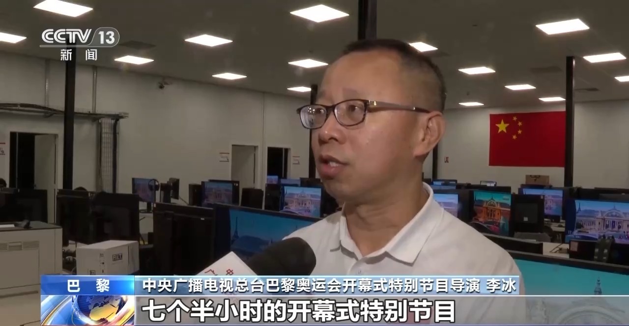 中央广播电视总台巴黎奥运会开幕式特别节目导演 李冰:巴黎奥运会这次的开幕式是在塞纳河上举行的,总台打造了七个半小时的开幕式特别节目,我们先遣团队把巡游路线沿途的各个地标也进行了勘查,力争为所有的观众呈现一场全方位、精彩的视听盛宴。