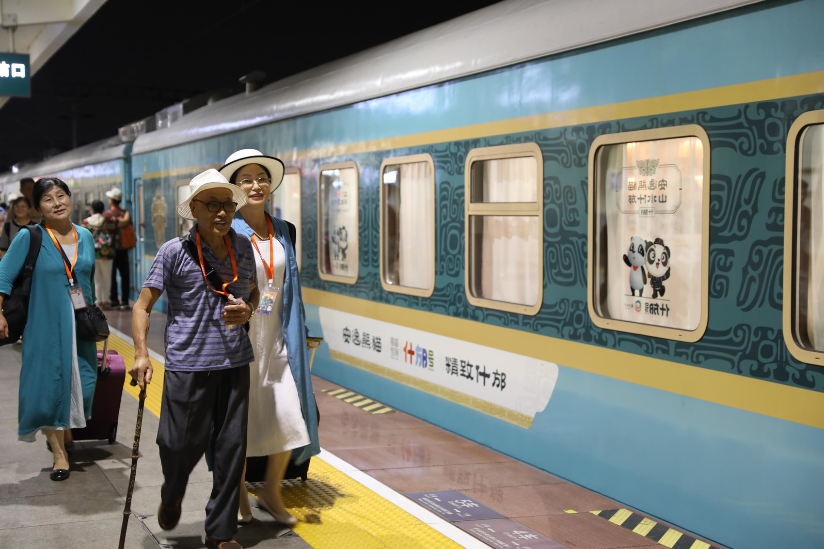7月16日21时30分,Y406/7次 “熊猫专列·什邡号”满载426余名旅客驶出成都西站前往新疆乌鲁木齐,正式开启2024年“疆湖万里行”主题风情游。这是今年成都局集团公司开行的首趟新疆方向“熊猫专列”旅游列车,也是成都局集团公司推动“铁路+旅游”融合发展的又一重要举措。对于推动新疆培育发展旅游特色优势产业、促进各民族交往交流交融具有重要意义,为新疆建设国际生态旅游目的地注入新活力。