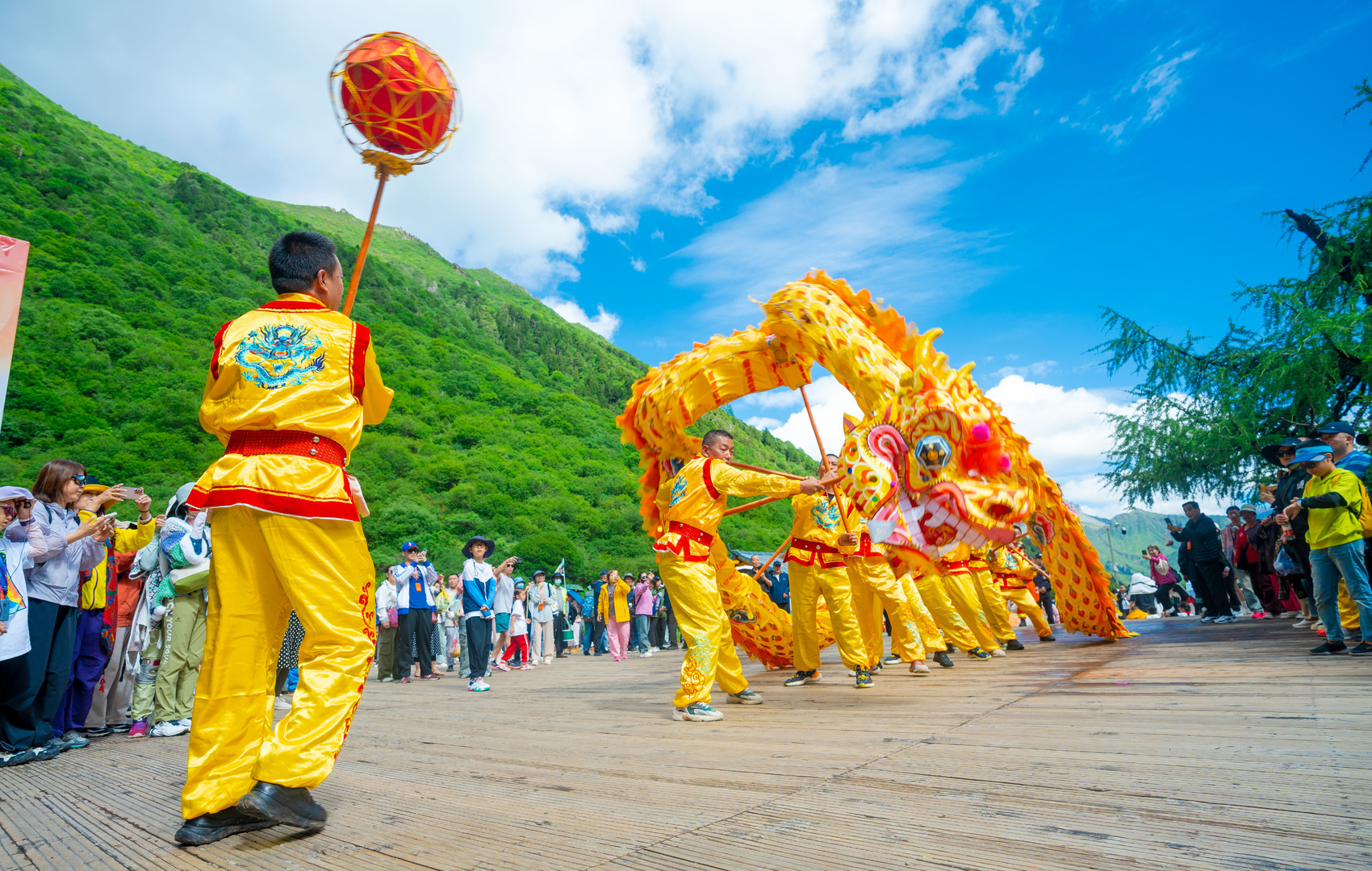 载歌载舞,飞龙戏珠。7月18日,2024“石榴花开·黄龙庙会”活动启动仪式在黄龙国家级风景名胜区黄龙后寺广场举行。