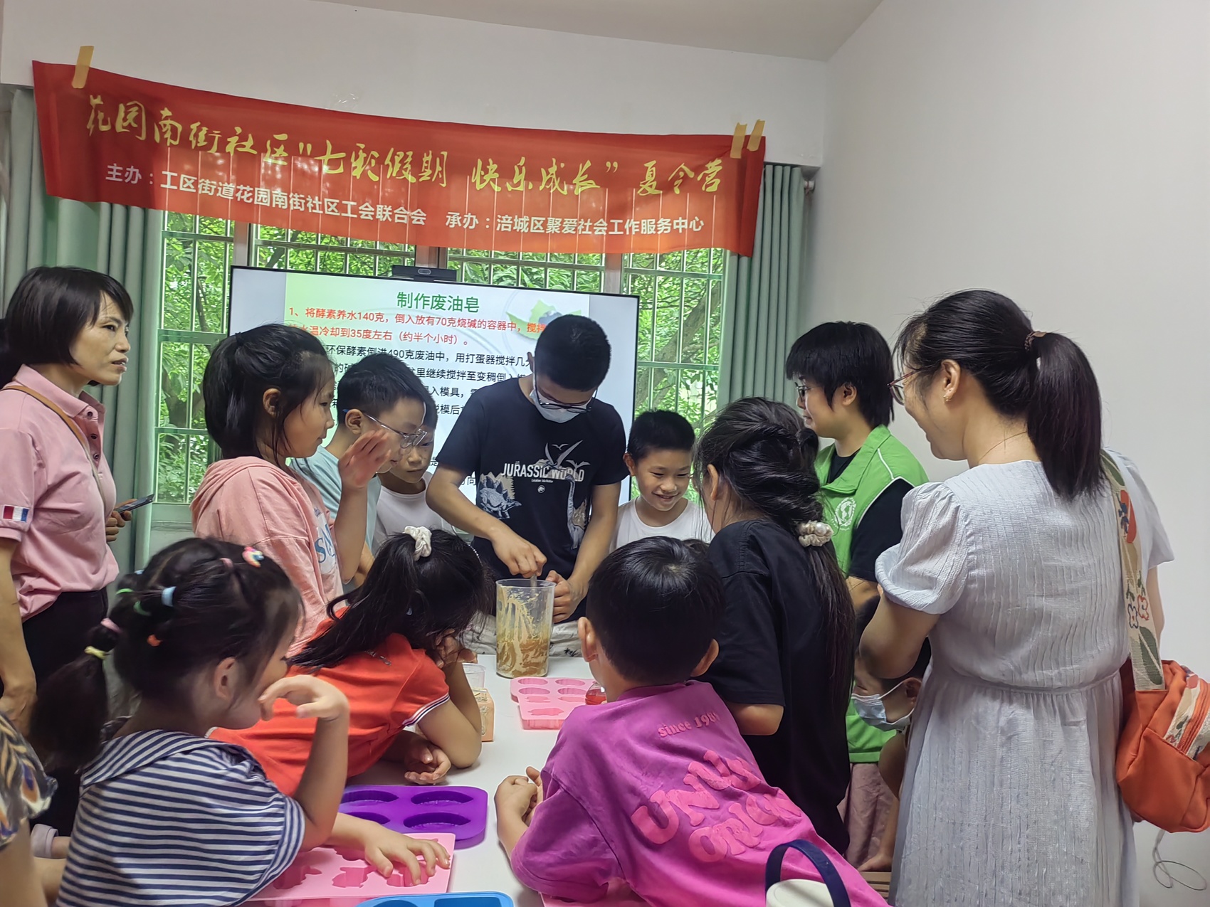 涪城区工区街道花园南街社区的七彩假期夏令营活动现场