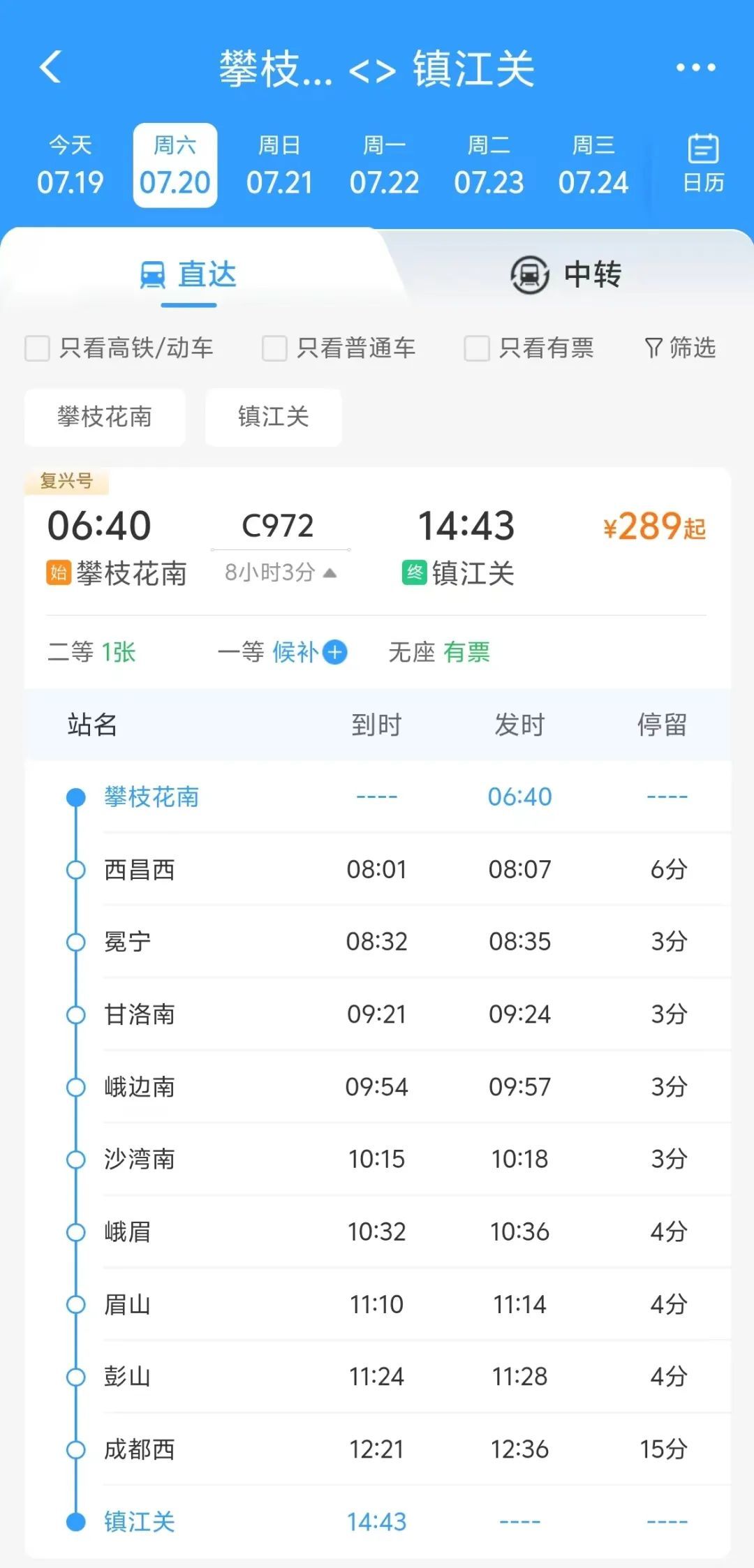 沿途停靠西昌西、甘洛南、峨眉