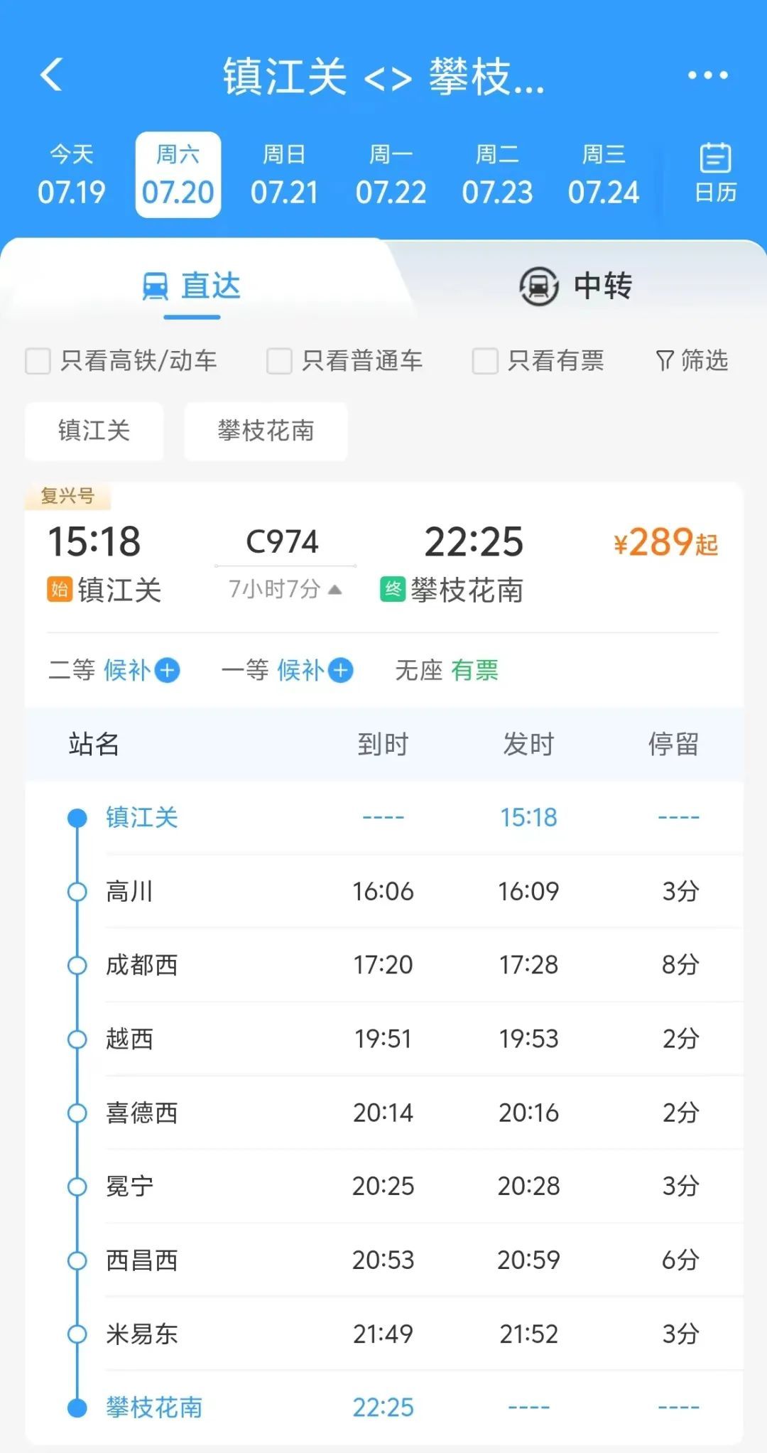 镇江关至攀枝花南的C974次列车