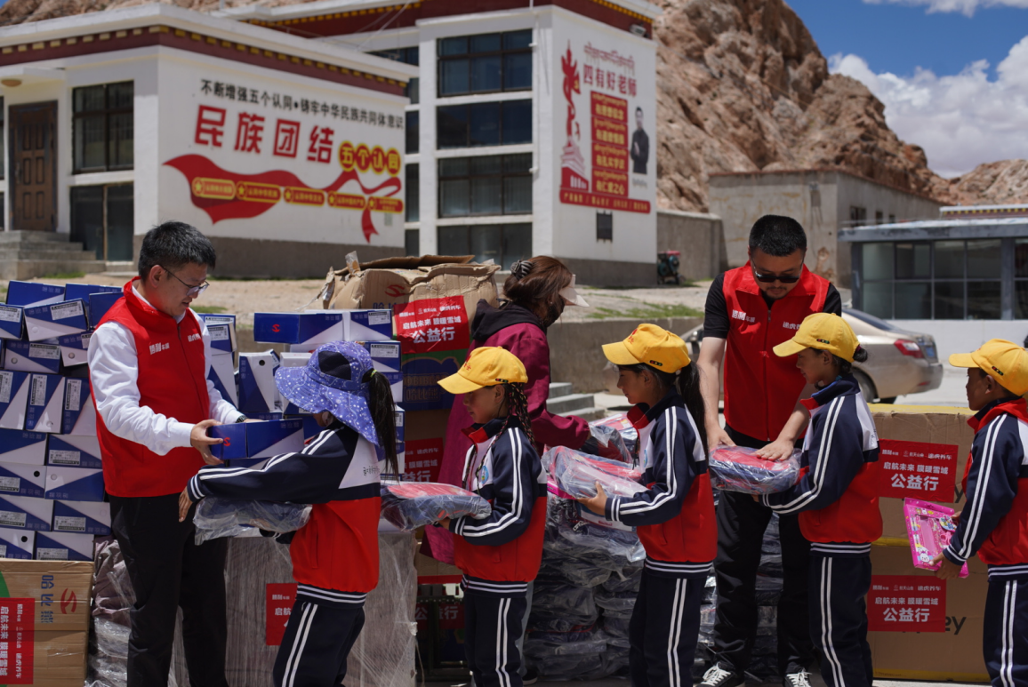 阿里地区海拔高、昼夜温差大,胜利车膜携手航天山由和途虎养车采购了一批羽绒服、厚棉被和童鞋等作为爱心物资,向察布乡小学学生送去温暖,同时,为表达对援藏教师的关爱和敬意,一件件加绒冲锋衣也被送到老师们的手中。