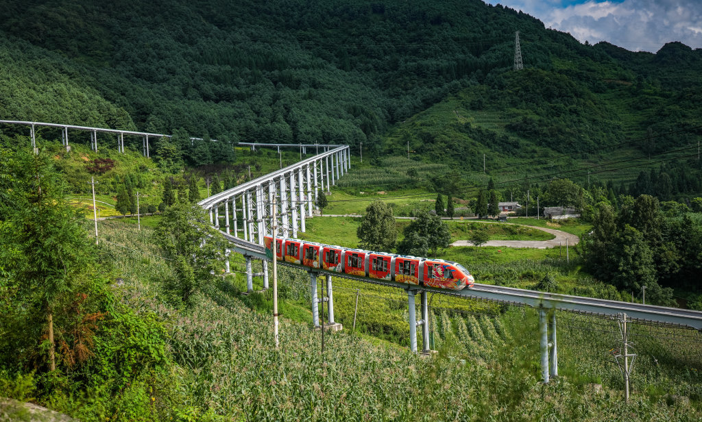 这是7月18日在贵州省六盘水市水城区海坪街道拍摄的观光小火车。