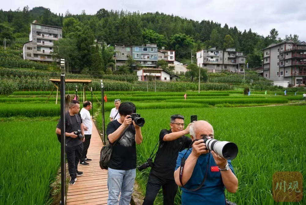 7月19日,彭水县太原镇“稻香童年”田园综合体,新闻摄影名家、记者们正在采访拍摄。重庆日报记者 张春晓 摄
