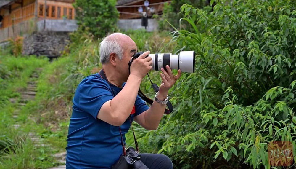 7月19日,彭水县太原镇“稻香童年”田园综合体,中国新闻摄影学会会长兰红光正在拍摄。重庆日报记者 张春晓 摄