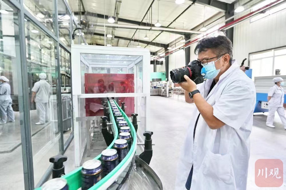 7月19日,彭水县乔梓乡长寿村,重庆阿依达太极泉水股份有限公司车间,中国新闻摄影学会副会长、四川省新闻摄影学会会长尹钢正在拍摄。重庆日报记者 谢智强 摄