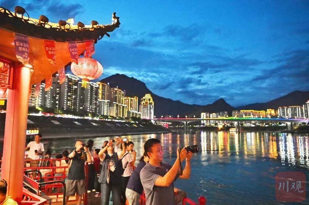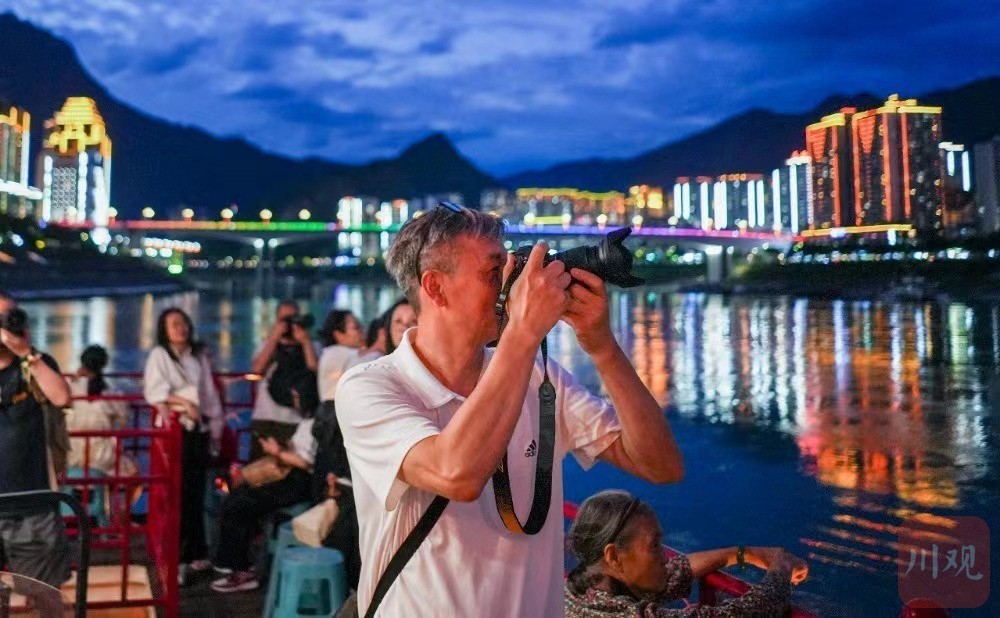 7月19日,川渝新闻摄影名家、记者们正在拍摄彭水城区的靓丽夜景。重庆日报记者 龙帆 摄