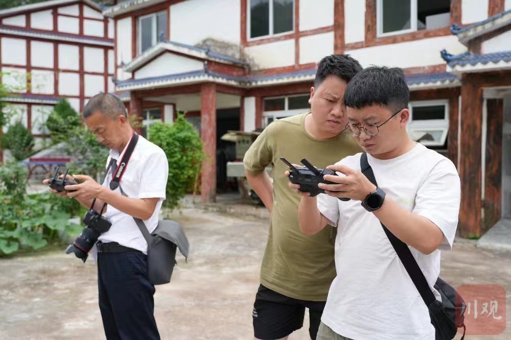 7月19日,彭水县乔梓乡长寿村,重庆市康百矿泉水有限公司,川渝新闻摄影名家、记者们正在拍摄。重庆日报记者 龙帆 摄