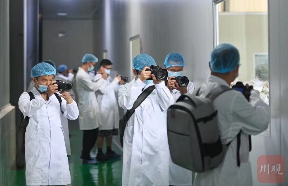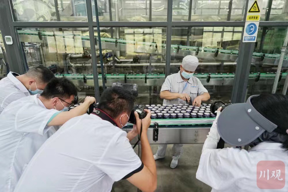 7月19日,彭水县乔梓乡长寿村,重庆阿依达太极泉水股份有限公司车间,川渝新闻摄影名家、记者们正在拍摄。重庆日报记者 谢智强 摄