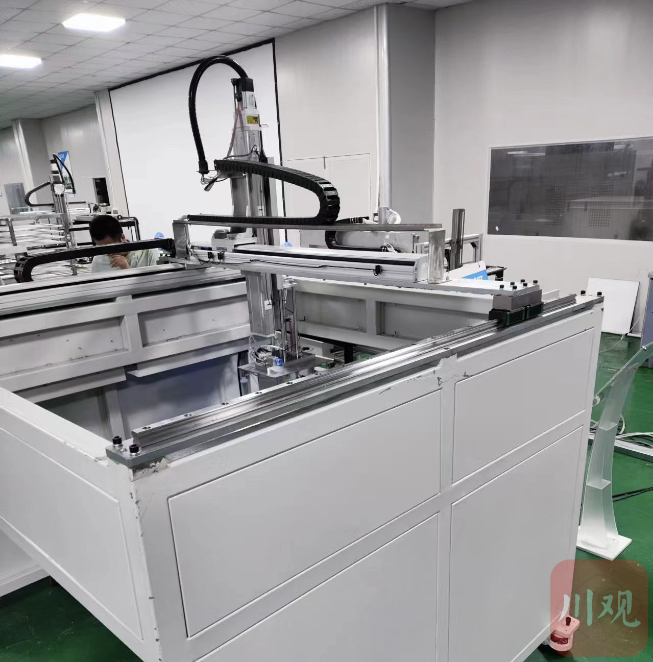 自高阀门的桁架机器人正在取料放入设备内加工。