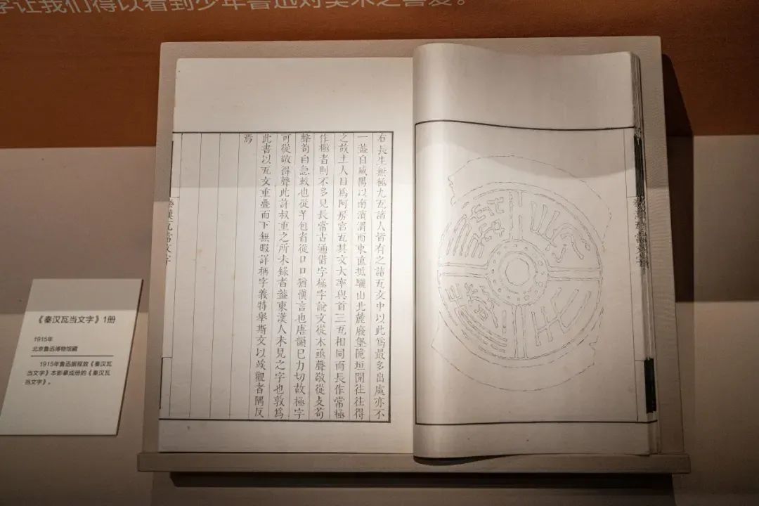 在艺术教育极大普及、美育理念得到极大重视的今天,鲁迅持续终身的美术研究、精进与实践,向我们展示出一种对待艺术应有的态度。少年时代的他,即热衷于搜集《山海经》《诗画舫》等带有插图的书,并影写书中绣像,又比如此次展出的、鲁迅在1915年根据程敦本进行影摹成册的《秦汉瓦当文字》,线条细致纯熟,可以看出他对于线条很强的驾驭能力。