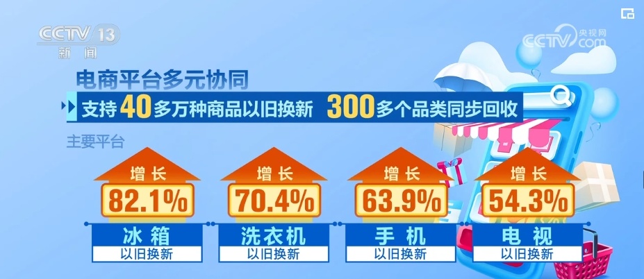 数字商品、服务消费、以旧换新成为新增长点,AI学习机和智能穿戴增长136.6%和31.5%,重点监测在线旅游和在线餐饮增长59.9%和21.7%。电商平台多元协同,支持40多万种商品以旧换新、300多个品类同步回收,主要平台冰箱、洗衣机、手机和电视以旧换新增长82.1%、70.4%、63.9%和54.3%。