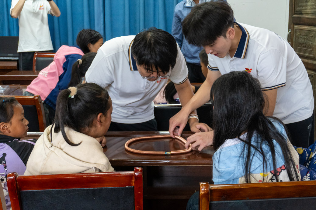 电子科大的同学们在三河村指导中小学生完成科技制作