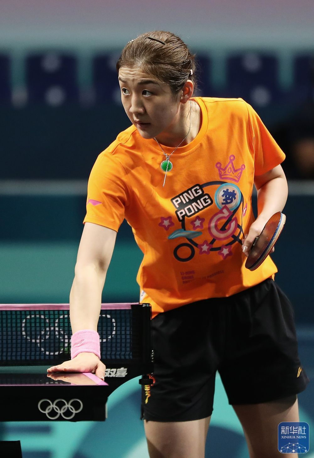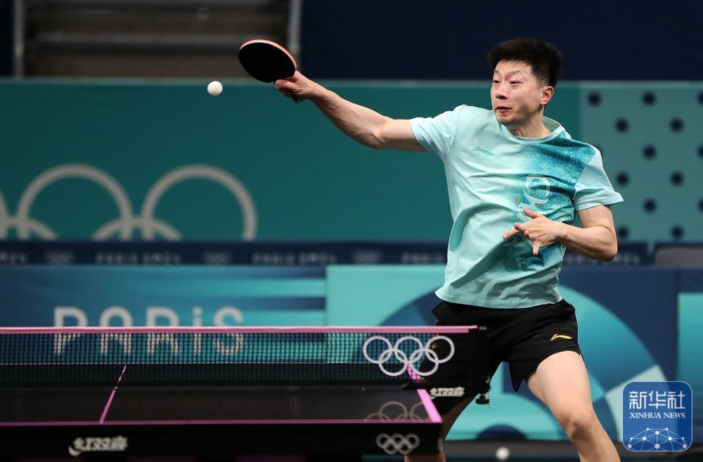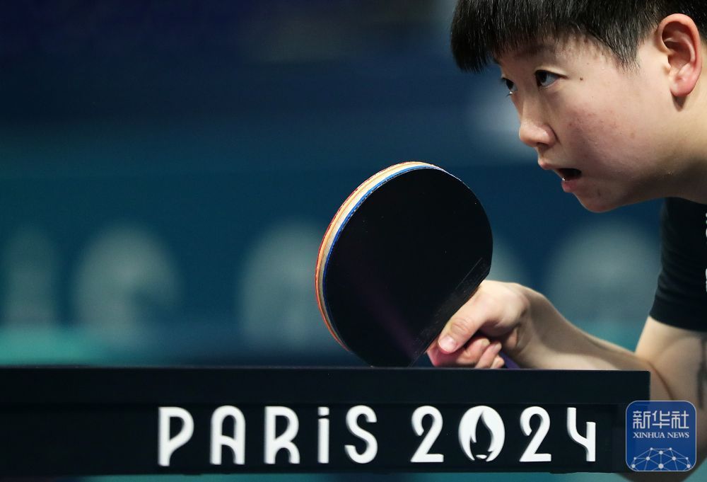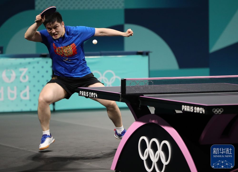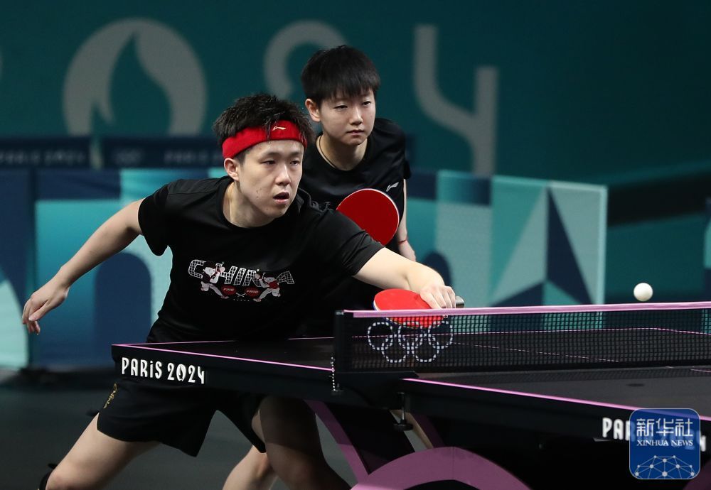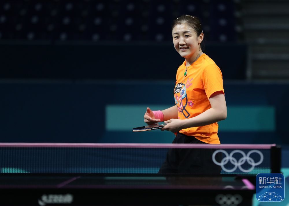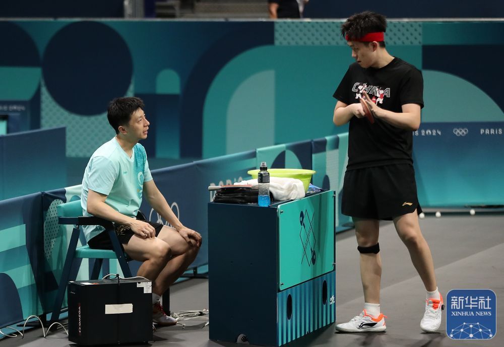 7月22日,中国国家乒乓球队在南巴黎竞技场进行赛前训练。巴黎奥运会乒乓球项目将于7月27日迎来首个比赛日。新华社记者 王东震 摄影报道