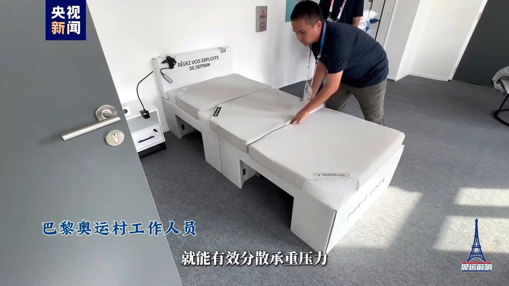 今年巴黎奥运会沿用了东京奥运会期间的纸板床,并进行了改进。标准纸板床长2米、宽0.9米,还可根据需要额外延长0.4米,最高承重达250公斤。