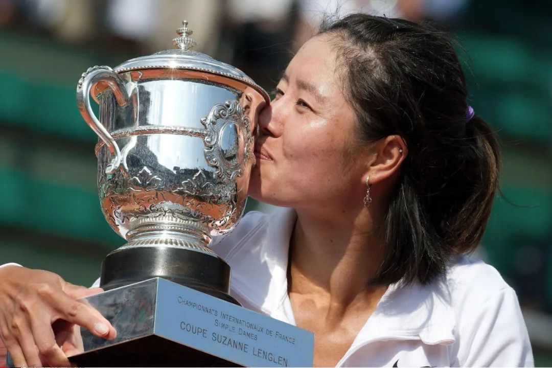 2011年法网女单决赛颁奖仪式,李娜亲吻冠军奖杯。