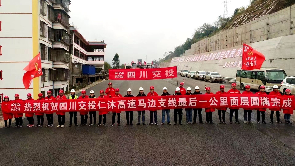 12月15日,仁沐新马边支线最后一公里面层铺设完成。在仁沐新高速马边支线终点的施工现场,机器轰鸣、货车穿梭,压路机平缓驶过;另一边,工人正在铺设沥青、刮着水泥,装修着高速路口站牌,完成最后的装修、绿化等相关工作。