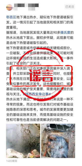 案例七:利用AI软件编造“地下热管道破裂”网络谣言