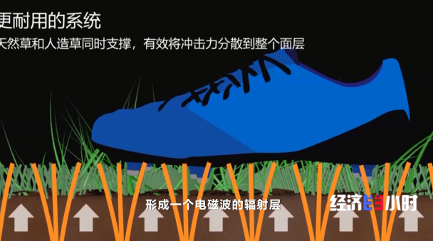 换言之,这款人工草坪独特的编织结构可以让天然草生长和穿透,而且企业使用的一种叫“太赫兹”的材料会在草坪的底部形成一个电磁波的辐射层,抑制细菌生长和发育,从而更好地保护草坪。
