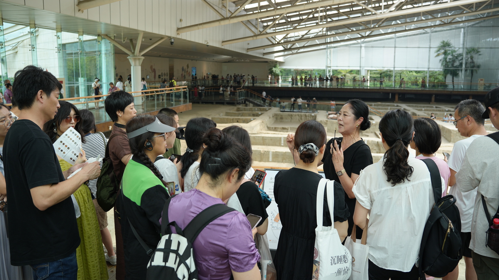 记者从馆方了解到,暑假以来,金沙遗址博物馆开展“专家导赏——胡晓蓉带你看金沙”活动,邀请资深讲解员胡晓蓉现场公益讲解古蜀文明;依托馆藏文物,推出文物修复、古建筑鉴赏等社教课程,吸引了不少青少年到场参与。