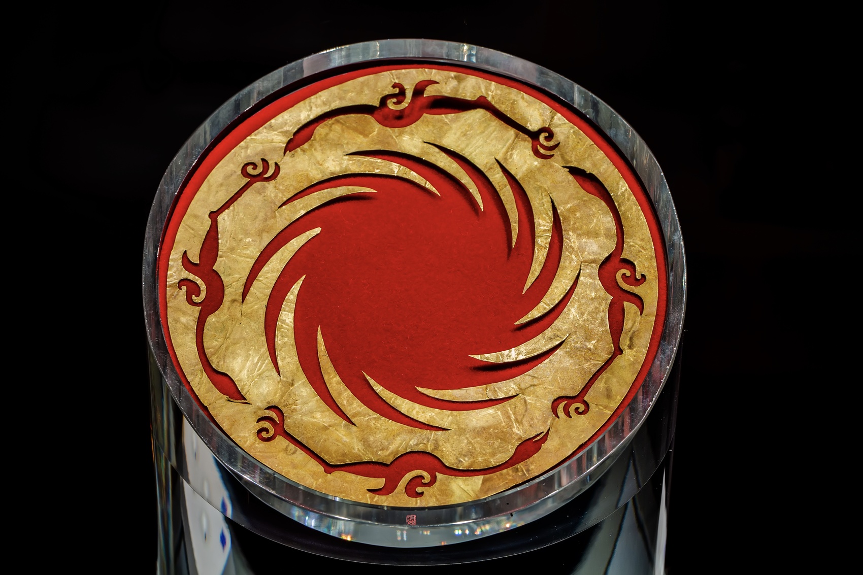 成都金沙遗址博物馆极具代表性的馆藏文物——太阳神鸟金饰。