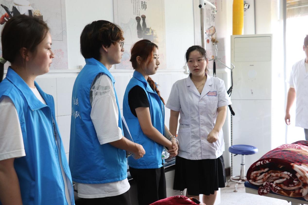 在村支书的指引下,带队老师王柯文和队长鲁一带领全队人员前往当地卫生院进行参观走访。