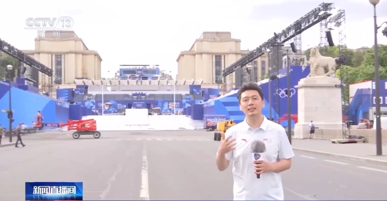 总台央视记者 郑怡哲:当我们看到埃菲尔铁塔上的奥运五环标志的时候,就基本上抵达了运动员入场的终点。埃菲尔铁塔下面的战神广场本身也是一座比赛场馆,它是临时搭建的沙滩排球的比赛用地。开幕式当天,运动员、教练员和代表团官员们乘船抵达附近水域后,会从埃菲尔铁塔一侧,穿过耶拿桥,来到对面的特罗卡德罗广场,相关的开幕仪式环节很多都将在这里举行。目前现场的搭建装修还在收尾阶段,让我们共同拭目以待。
