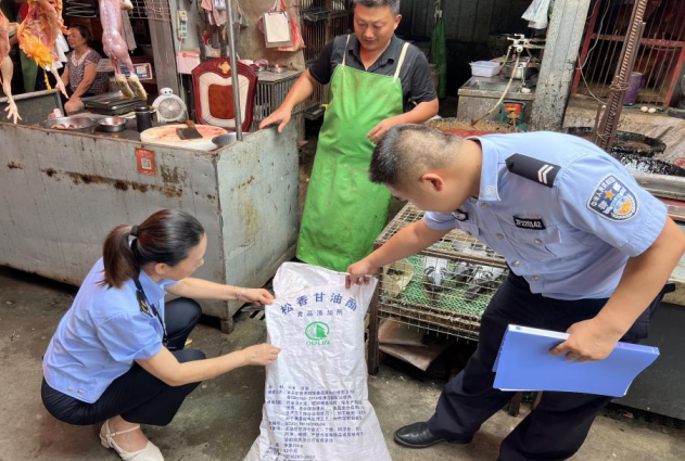 针对上述这种情况,执法人员对辖区内多个集贸市场活禽宰杀点进行了全面排查。经排查,暂未发现使用工业松香用于禽畜脱毛的违法行为,所有活禽宰杀点经营者都使用符合国家规定的食品级松香进行禽畜脱毛。