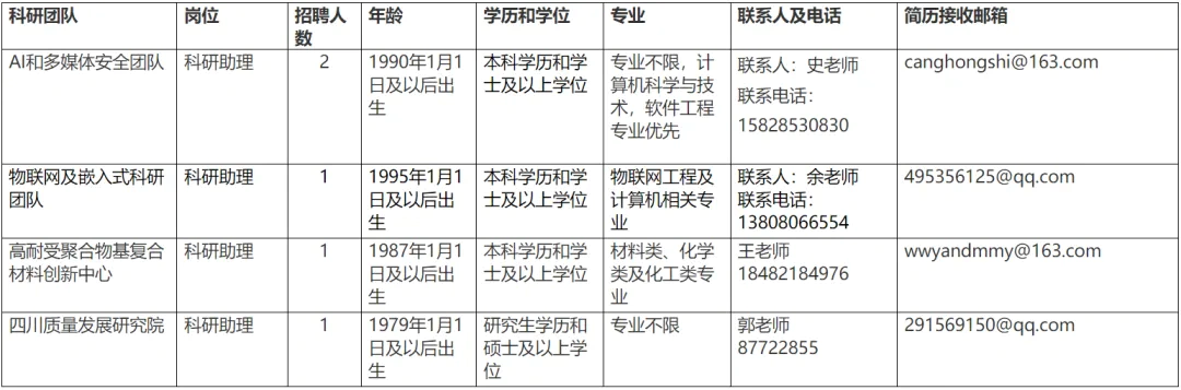 3.本次科研助理岗位招聘公告2024年度内有效。