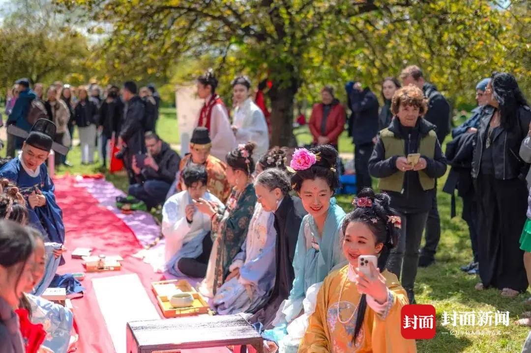 2024年农历三月三日,法国博衍汉章传统研习会在巴黎近郊的国玺公园举行了上巳春日雅集,这是协会连续第九年举办上巳节相关活动。“这个真的是已经变成了当地民俗的节日,会印在当地政府的小册子上。当地法国媒体很早就问,这个节日今年是哪一天,他们自己就会过来报道,已经是深入到周边所有居民都知道的节日,而且都会来。”仲月茹说今年的上巳节吸引了超过两千人,“我们半天的活动,人流量是2000以上,在欧洲这已经很厉害了。”