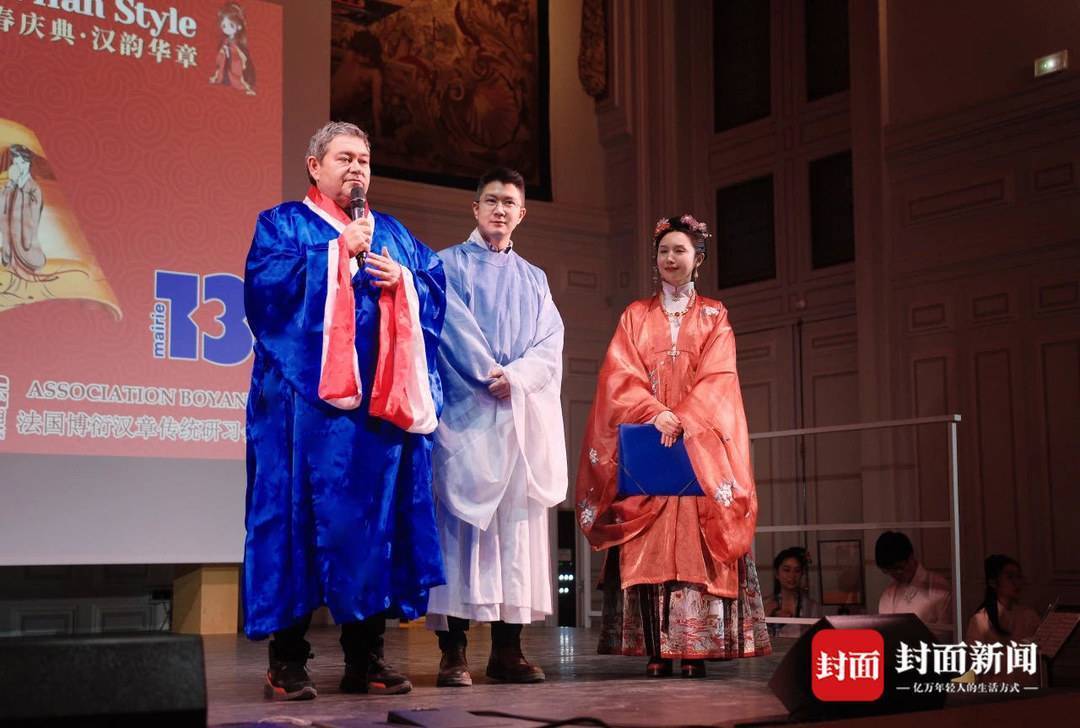 今年正值中法建交60周年,汉服、汉文化推广的活动也越来越多,仲月茹很难忘的一件事,是协会举行的法国春晚活动中,仲月茹代表协会送给巴黎第13区区长顾梅的一套蓝白红汉服,入选了“100件中法有意义的展品活动”,融合法国国旗三色的真丝汉服,搭配顾梅字正腔圆的“汉服”发音,成为中法友谊、汉服文化推广最好的见证。