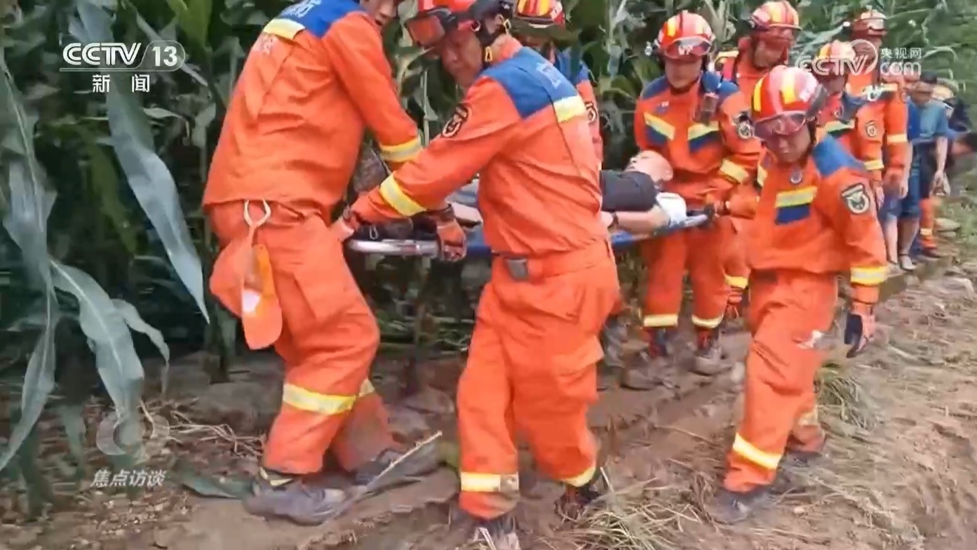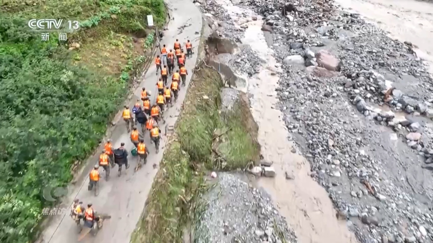 在灾难发生的时刻,在人民群众最需要的时刻,由应急、武警、消防、公安和民兵组成的救援队伍冲锋在前,逆流而上,连夜徒步进山展开搜救。村民们在救援队伍的带领下,往山外转移。