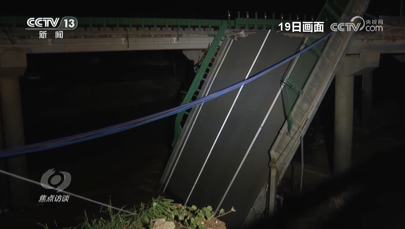 公路桥梁垮塌发生时,夏辉正和妻子驾驶车辆行驶在事发的高速公路上,有着多年驾龄的他发现了前方的异常,那辆白色的车突然不见了。夏辉一脚踩死了刹车。他下车查看,发现桥塌了,前面那辆白车掉进了河里,自己的汽车距离桥梁垮塌处仅有5米。