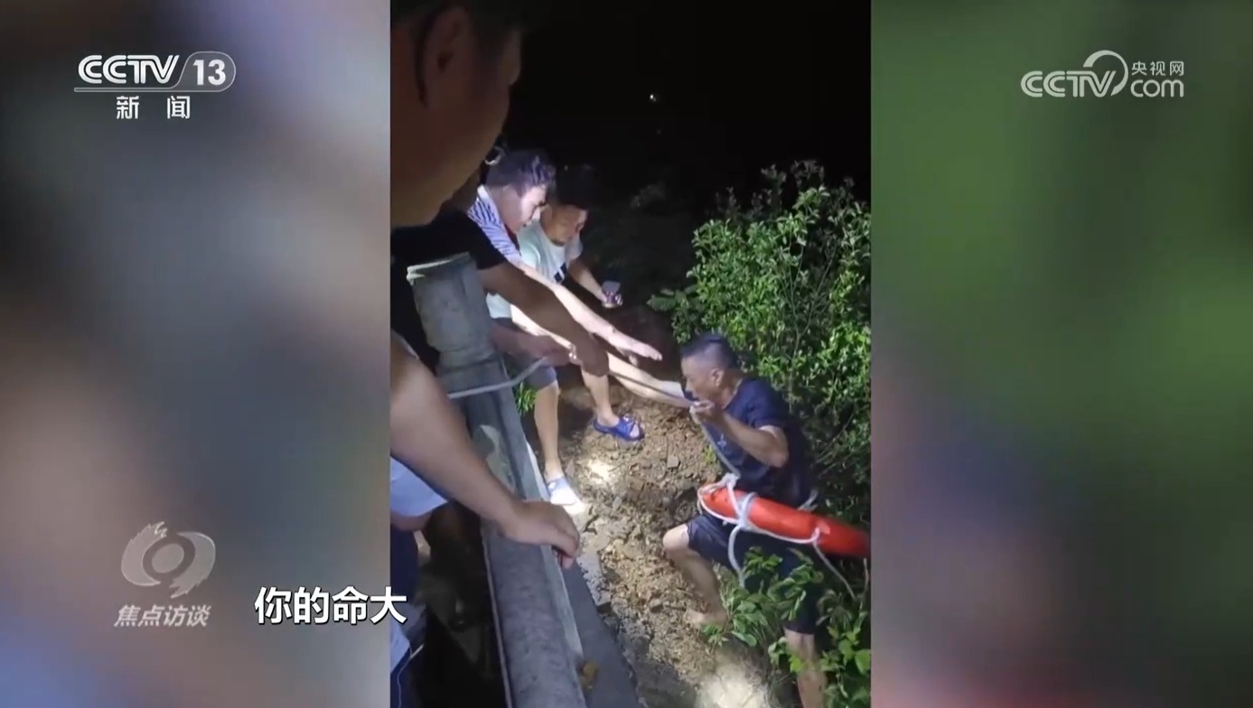 陕西商洛市柞水县杏坪镇严坪村第一书记姜镇:“当时那水都到这了,我第一个过去,然后我让他们都跟着我,沿着那个路走。”