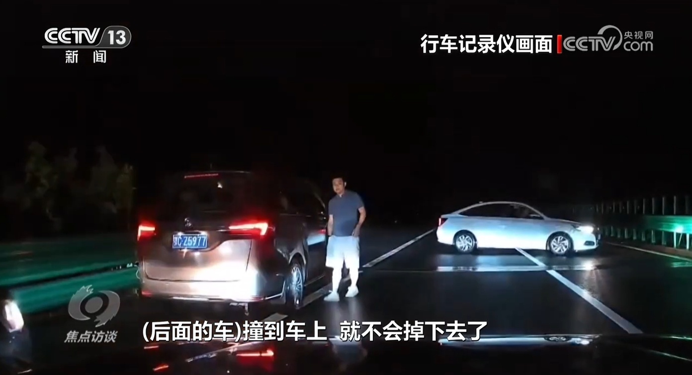 这是事发时被夏辉拦停车辆的行车记录仪拍下的画面。
