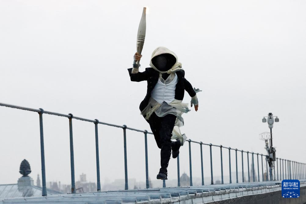神秘火炬手的灵感源于法国文化中一些知名的蒙面角色,他戴着面具,跟随运动员行进在队伍中,或穿梭在沿岸各种建筑屋顶上,或通过滑索从圣路易岛穿越塞纳河,他目睹了巴黎圣母院脚手架上工人的舞蹈表演,走进夏特莱剧院观看了《悲惨世界》音乐剧排练,并从卢浮宫的杰作前走过,进入到穿越时空的电影和科幻小说的世界中......