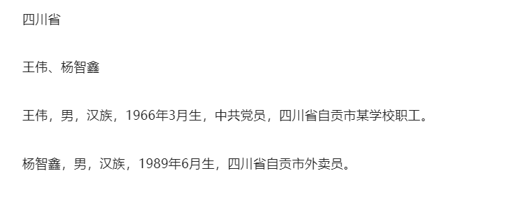 7月26日,中央政法委在京发布2024年第二季度见义勇为勇士榜。根据网络关注度和各地各单位推荐意见进行综合评审,评选出48位见义勇为勇士。其中,自贡市某学校职工王伟,自贡市外卖员杨智鑫两人光荣上榜。