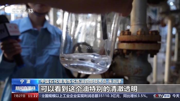 中国石化镇海炼化炼油四部技术员 朱刘津:这里有一个采样点,我给你看看“地沟油”处理完什么样。可以看到这个油特别清澈透明,它的流动性也非常好,我们目前已经能够实现批量化生产。