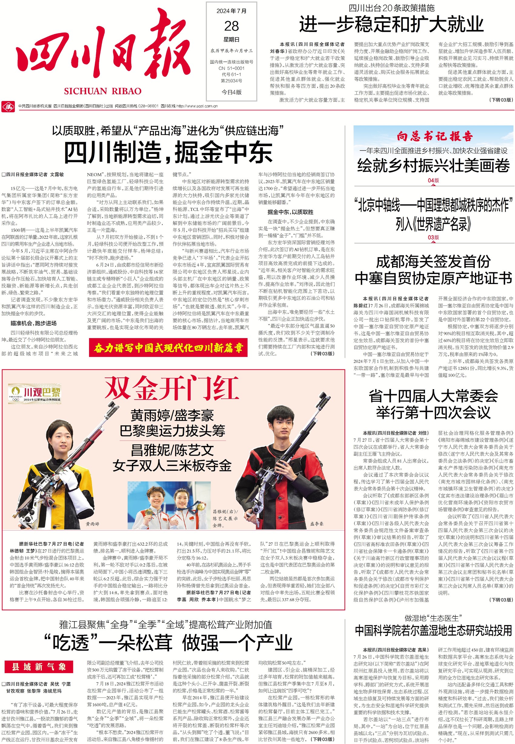 早上好,今天是7月28日,星期天,一天的信息更新,从川报一分钟早读开始。