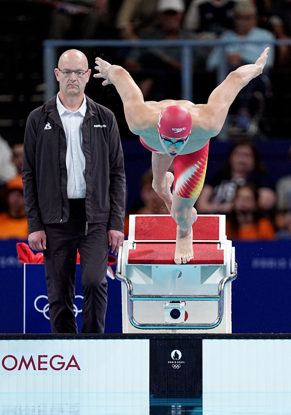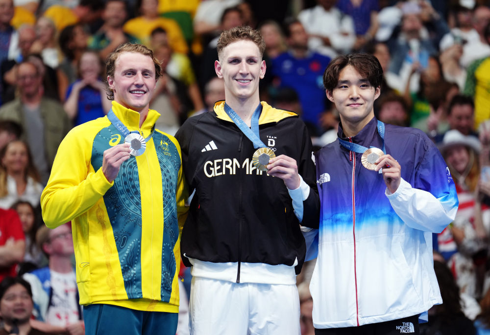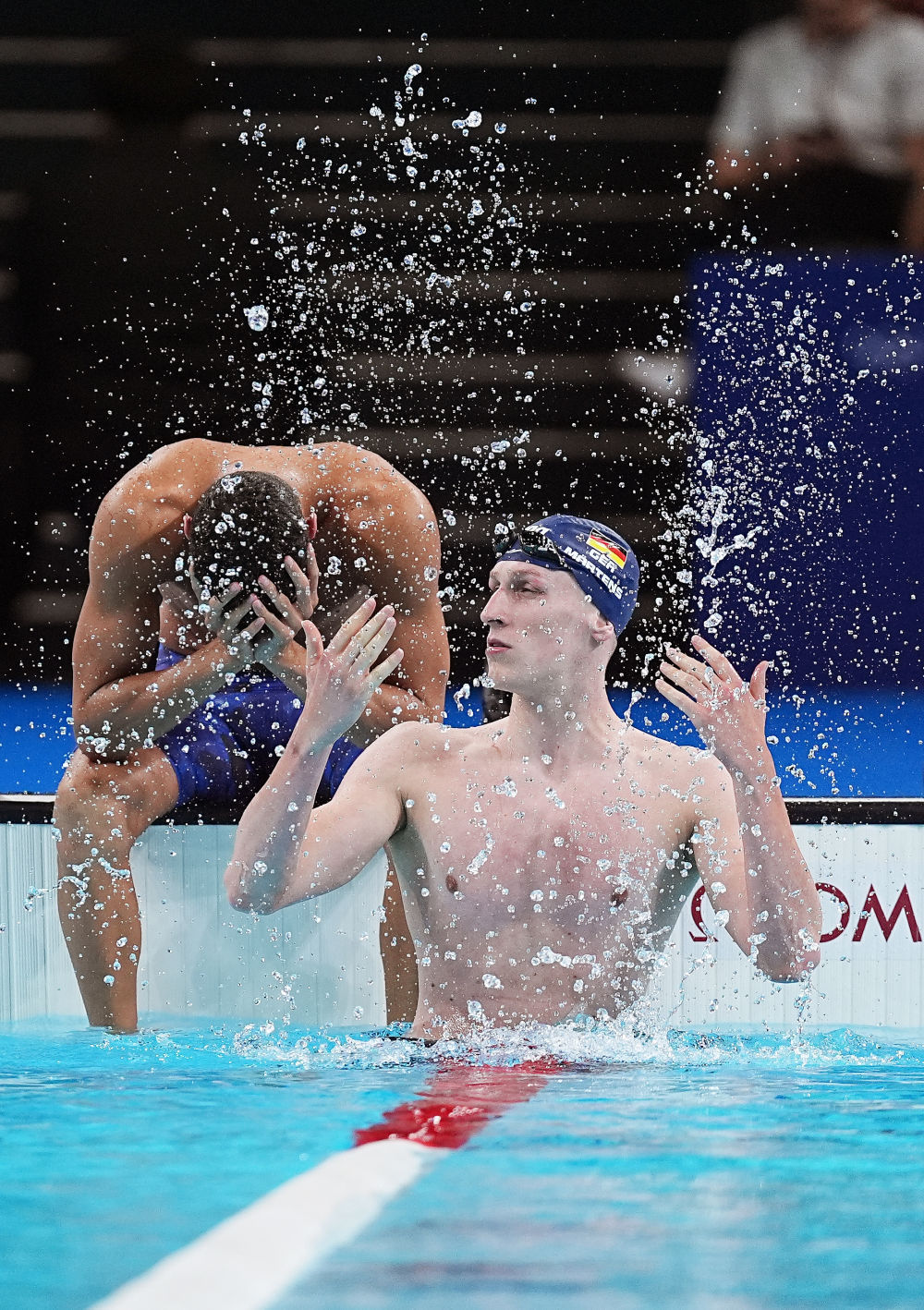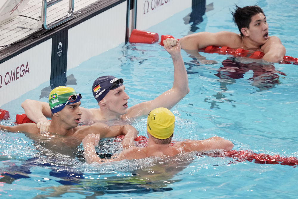 7月27日,巴黎奥运会游泳男子400米自由泳决赛在拉德芳斯体育馆举行。
