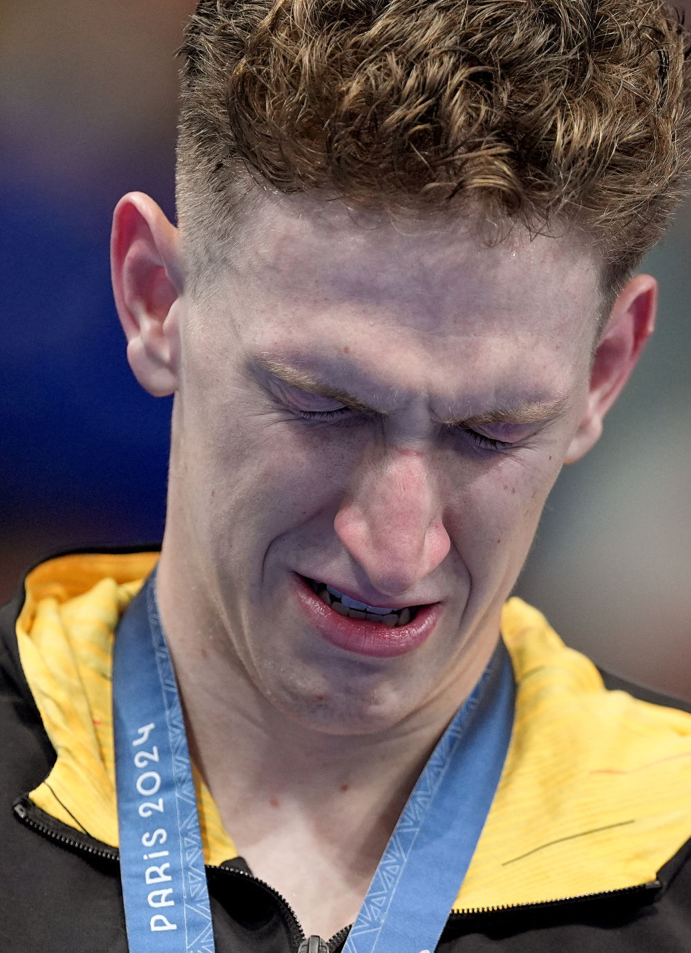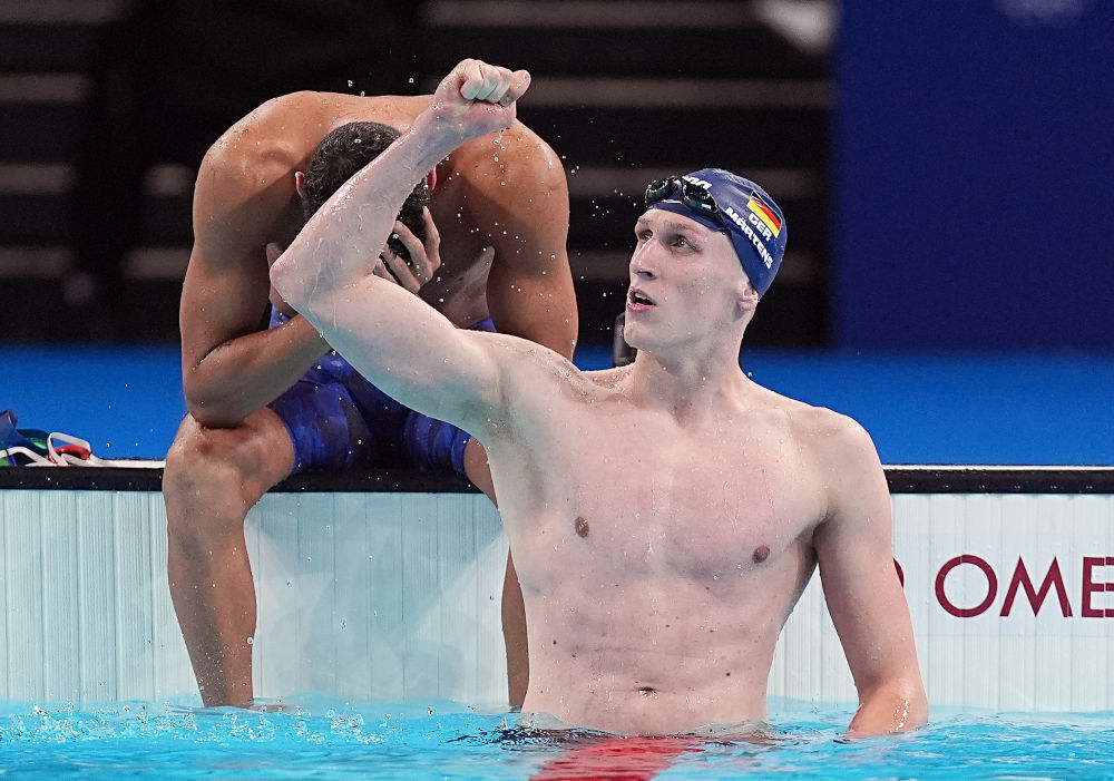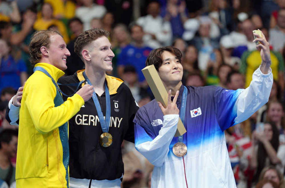 7月27日,巴黎奥运会游泳男子400米自由泳决赛在拉德芳斯体育馆举行。