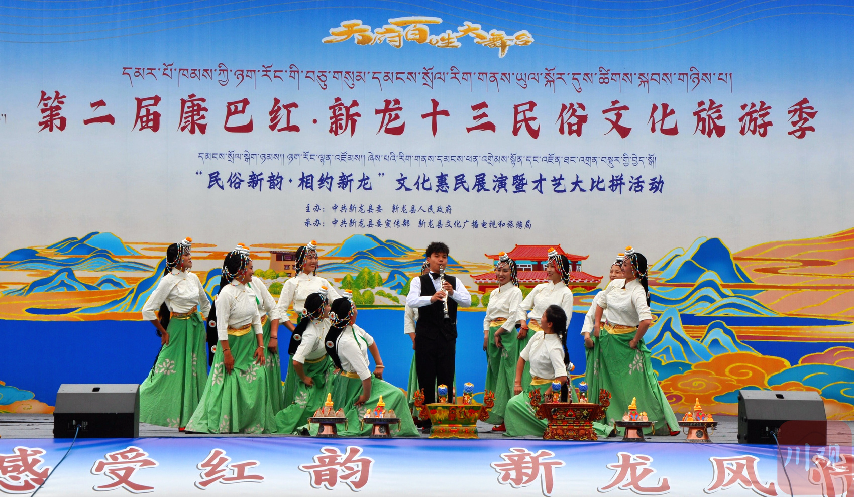 7月27日,第二届“康巴红·新龙十三”民俗文化旅游季——“民俗新韵·相约新龙”文化惠民展演暨才艺大比拼活动在新龙县拉日马镇盛大开幕。