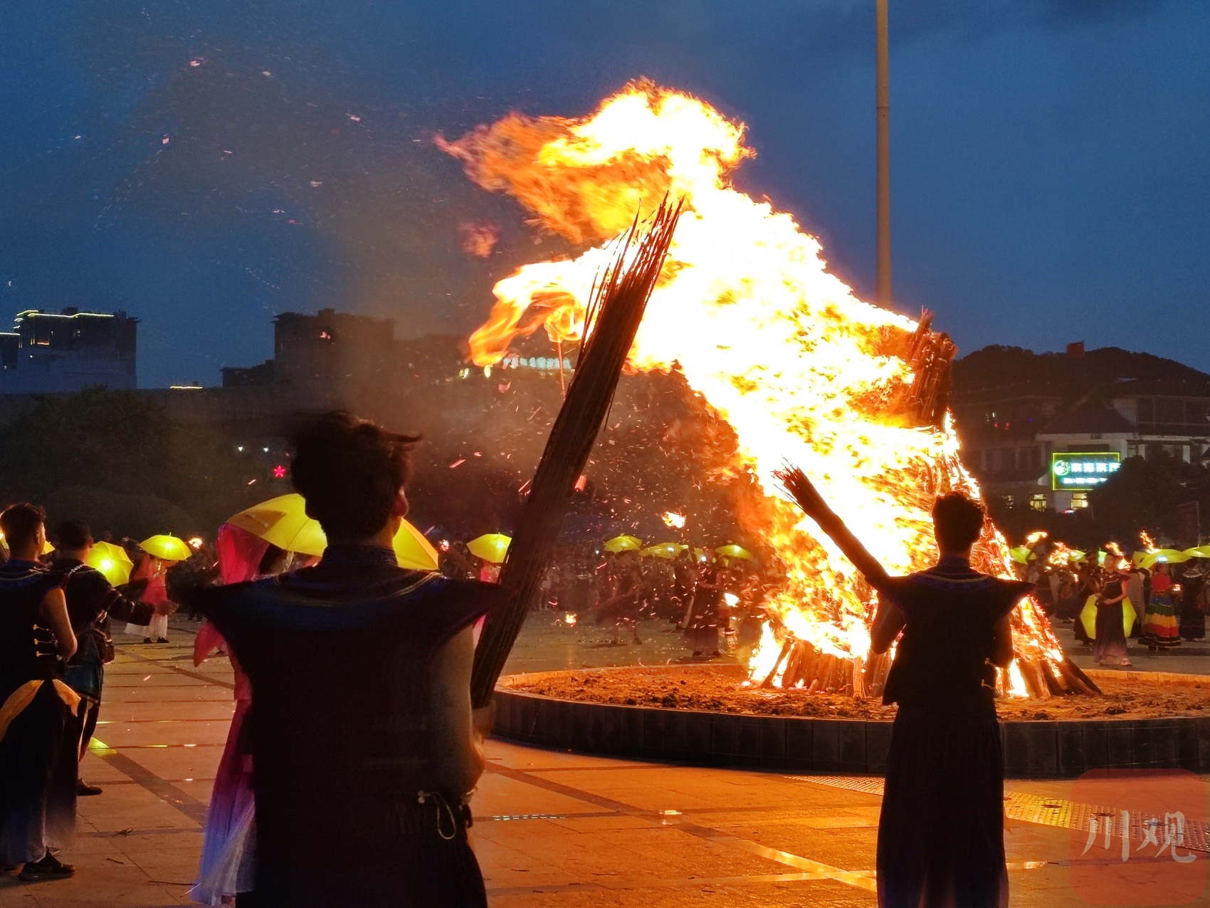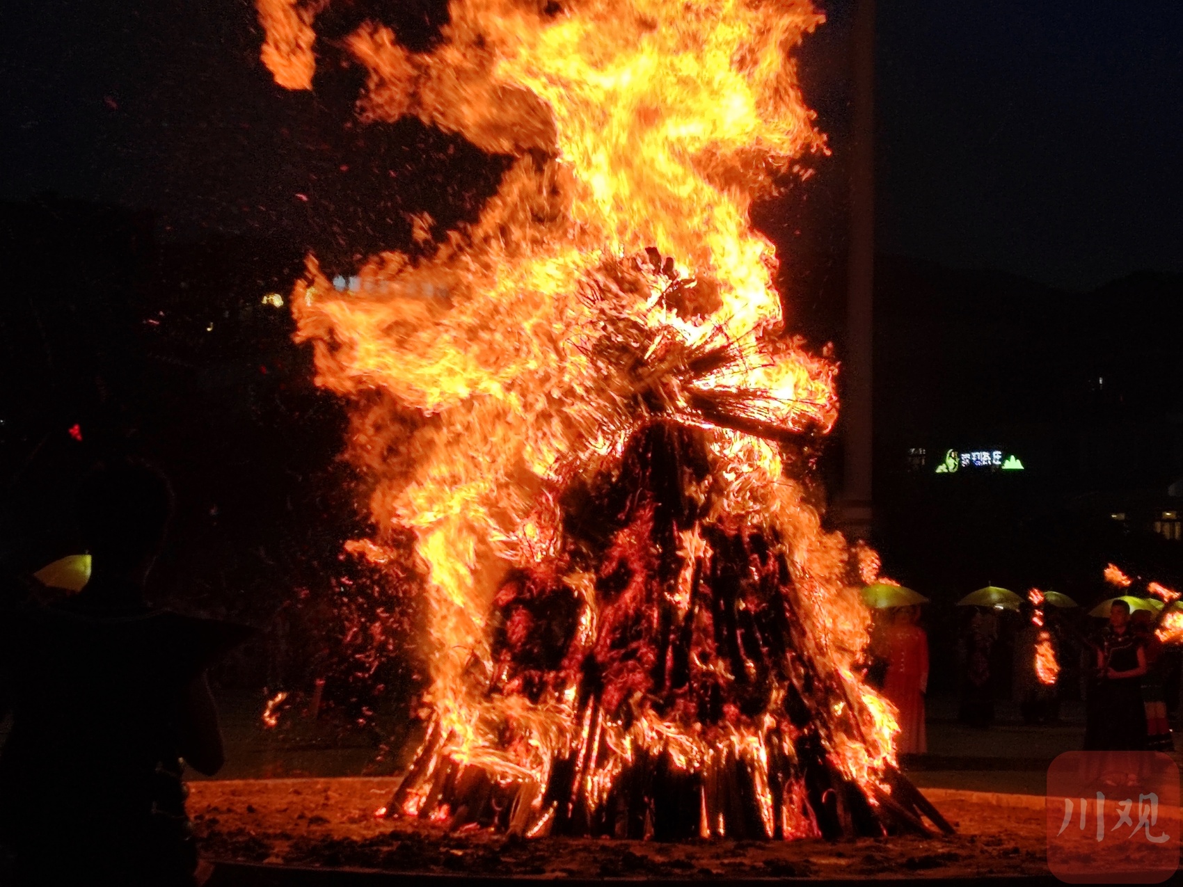 与此同时,冕宁县银杏大道7个火堆也被点燃。顿时,无数个火把将夜晚点亮,仿若星辰散落人间。熟悉的音乐响起,人们围着火堆而舞,尽情舞动,沉浸在节日的欢乐里。