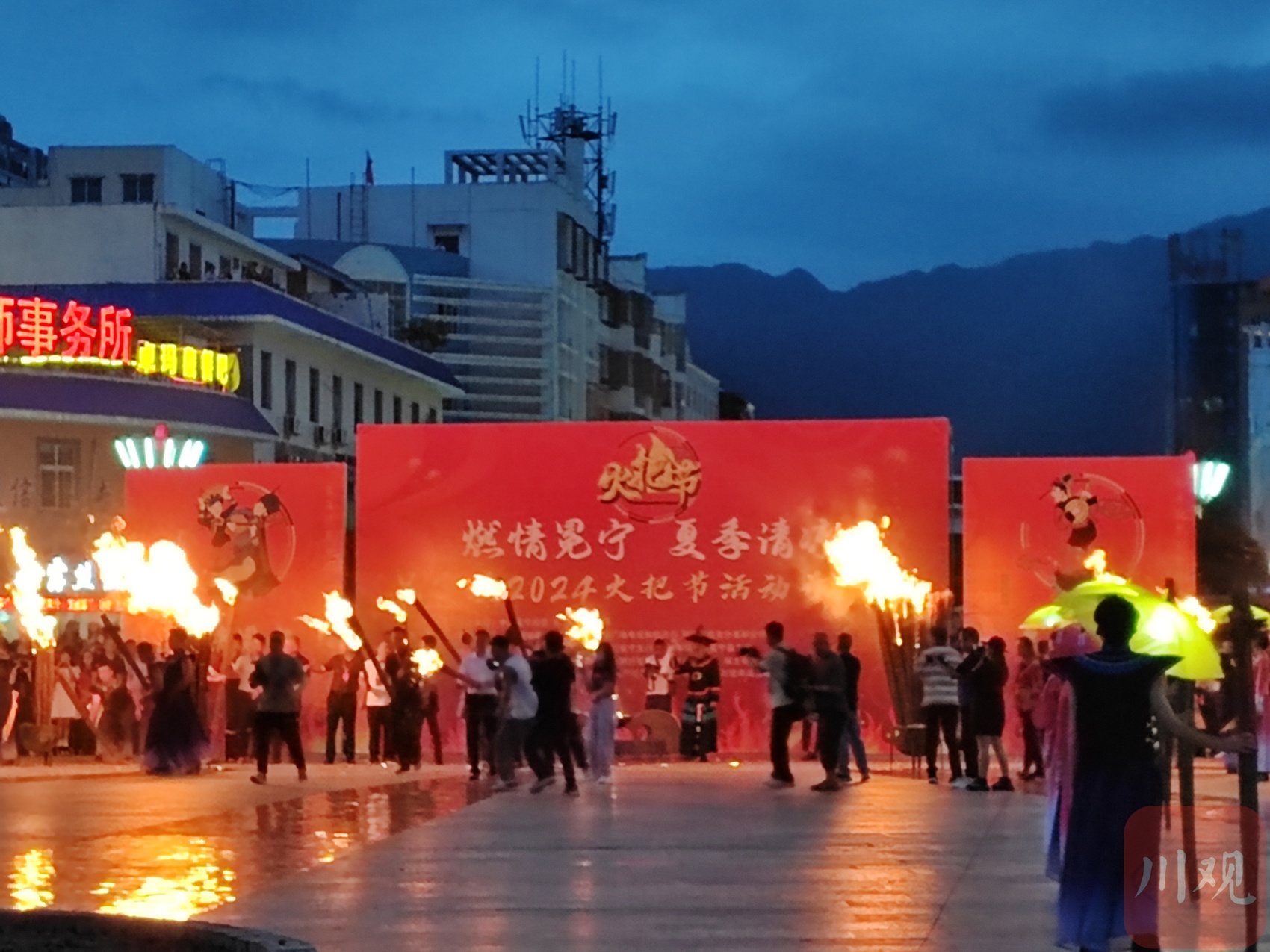 7月27日20时,2024年第九届凉山彝族火把节暨“五彩凉山·夏季清凉”文旅系列活动——冕宁分会场活动拉开序幕。随着冕宁县委书记、县人民政府县长王潇宣布活动开始,120名火把使者手持火把点燃主火堆。