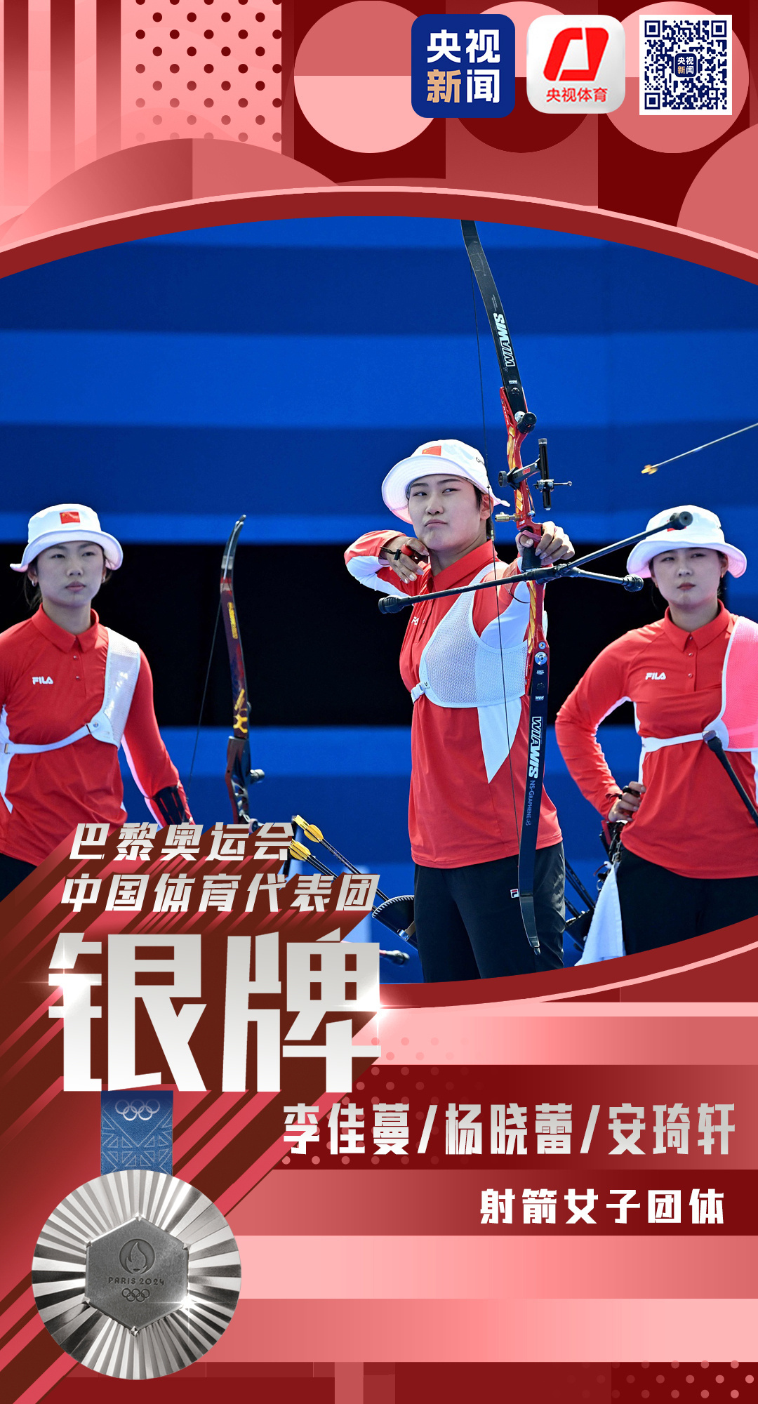 在巴黎奥运会射箭女子团体金牌赛中,由李佳蔓 、杨晓蕾、安琦轩组成的中国队不敌韩国队,获得银牌。为姑娘们点赞!