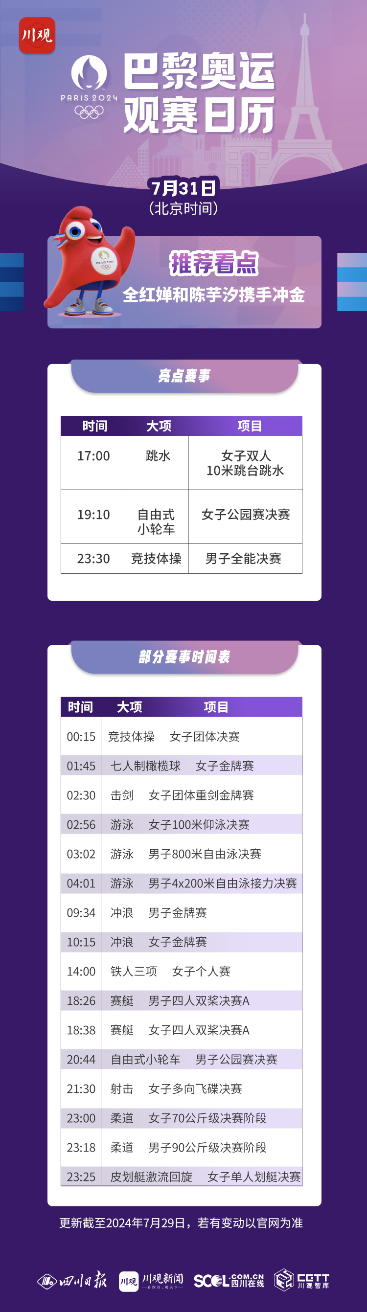 北京时间7月31日,备受关注的全红婵和陈芋汐将携手亮相女子双人十米台决赛,这是中国代表团当天最有把握的一枚金牌。