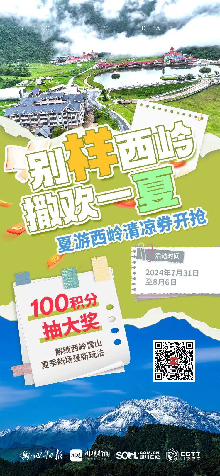 PS:川观新闻积分除了可以用于本次活动的抽奖,还可以前往积分商城兑换礼品,或参与其他活动。这次的夏游西岭清凉券除了在川观新闻客户端进行抽奖外,也可以前往四川日报微博、微信参与活动进行抽奖哦!(只能帮你到这了)