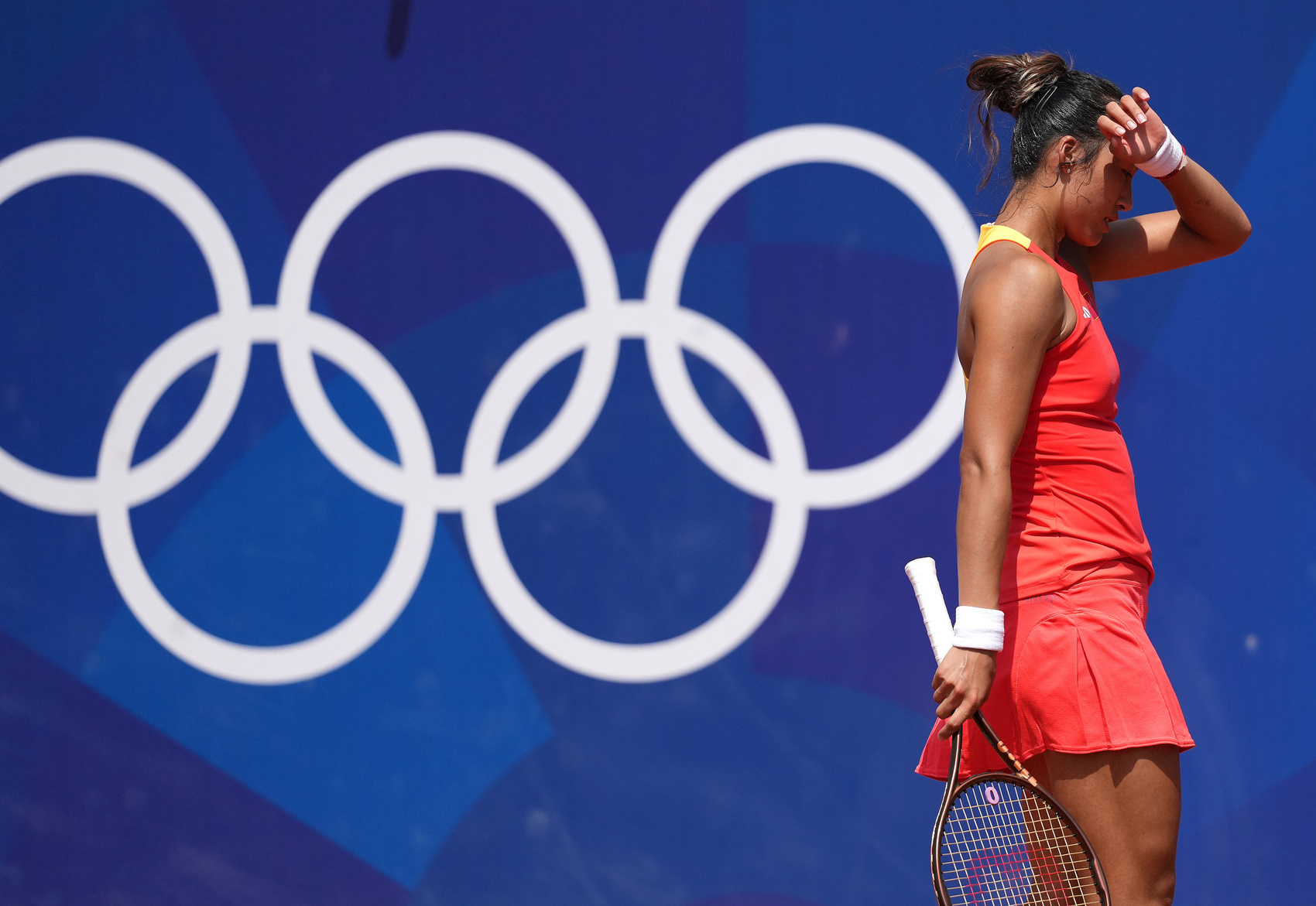 7月30日,郑钦文在比赛中。新华社记者 万象 摄